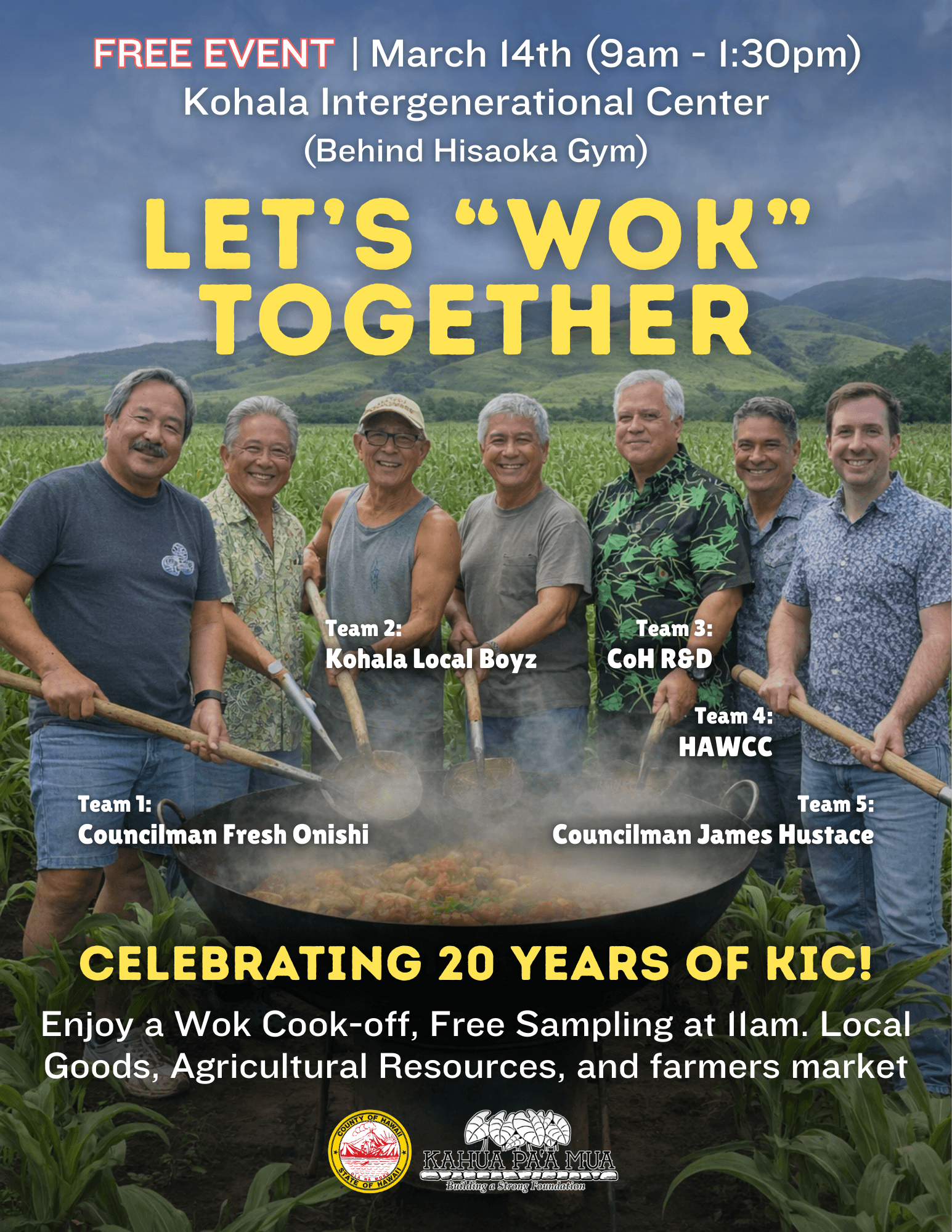 Kahua Paʻa Mua is sponsoring a Farm-to-Table Wok Cook-Off on Saturday, March 14 at Kohala Intergenerational Center in Kamehameha Park — and we're inviting the whole community to come celebrate.